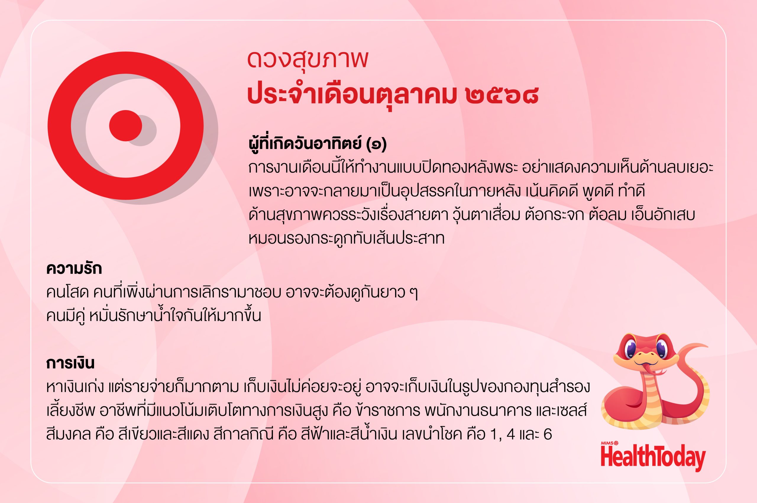 ดวงสุขภาพประจำเดือนตุลาคม ปี 2568